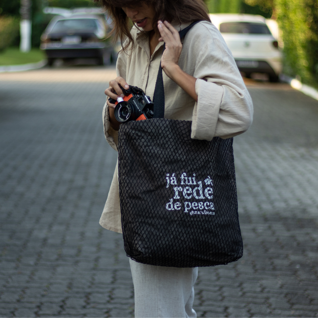 Use com orgulho e conte a história dela por aí — sim, essa bolsa já foi rede de pesca! 🎣