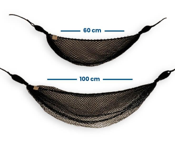 Ambas com aproximadamente 30 cm de “caminha” e 1 metro de cabo de cada lado