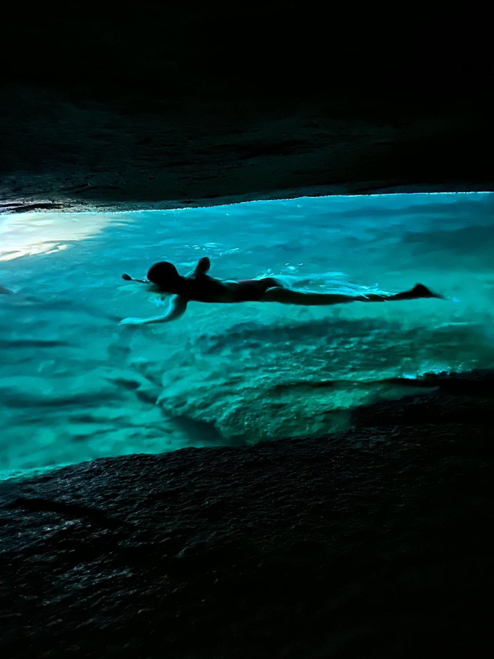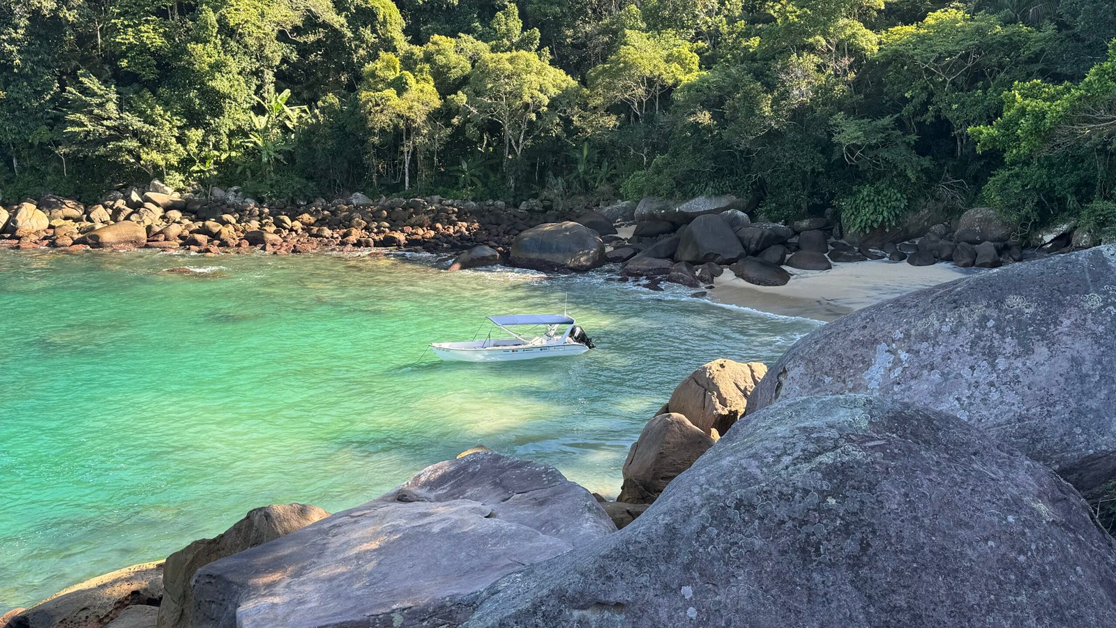 Uma gruta muito especial na ilha! Experiência única, onde é preciso fazer uma pequena trilha de 10 minutos para acessar a gruta que é iluminada somente pelo mar, proporcionando águas reluzentes! *Não indicada para pessoas claustrofóbicas (a passagem é de 40cm apenas em um trecho do caminho). Além da gruta, para-se no retorno na Lagoa Verde, Ubatubinha e Maguariqueçaba (almoço)