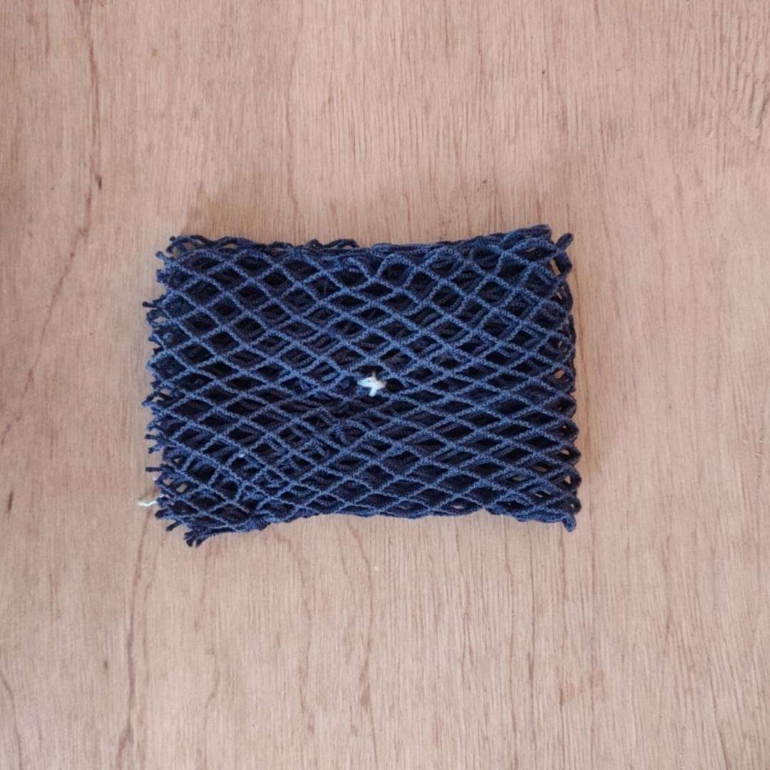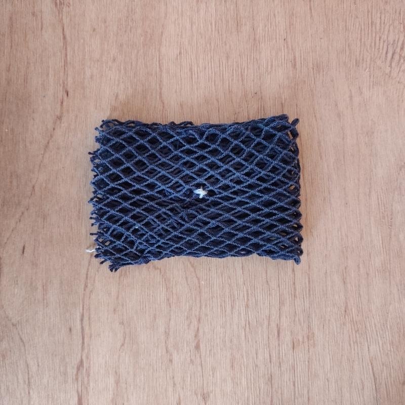 Ele é todo feito de rede de pesca grossa, reutilizada e trabalhada pelas mãos do Seu Filinho, redeiro daqui de Ilha Grande – RJ, e tem aprox. 15x10cm, mas pode sofrer variações de tamanho.
