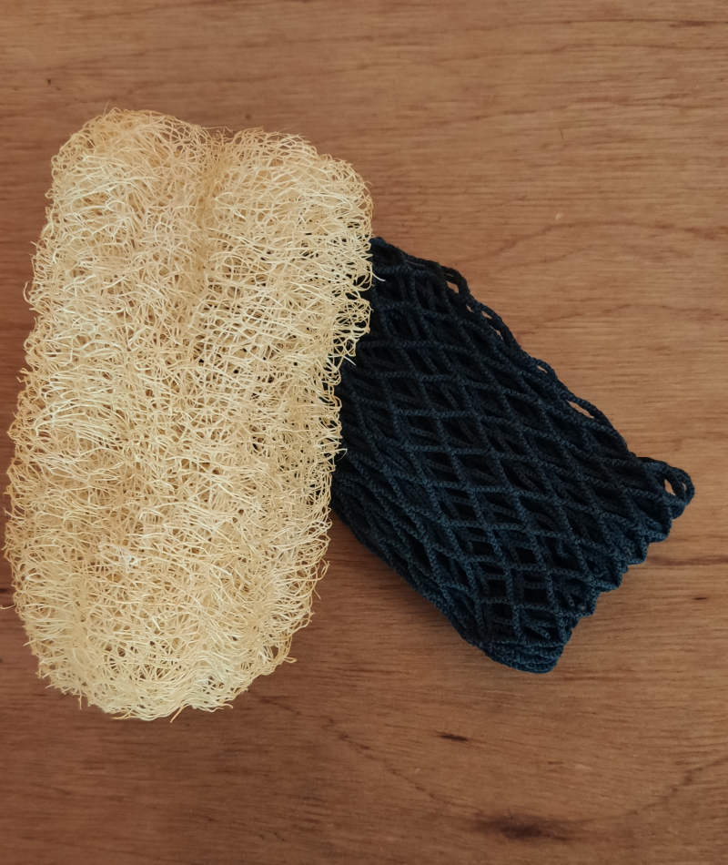 O esfregão feito de rede de pesca é ótimo para limpeza mais pesada, mas para aquela limpadinha de toda hora, nada melhor do que a bucha vegetal