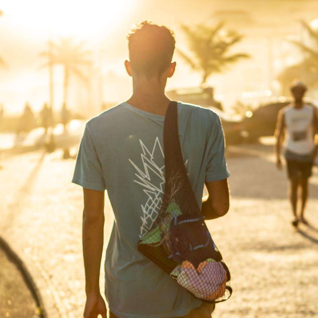 • Material: rede de pesca reutilizada (upcycling)
