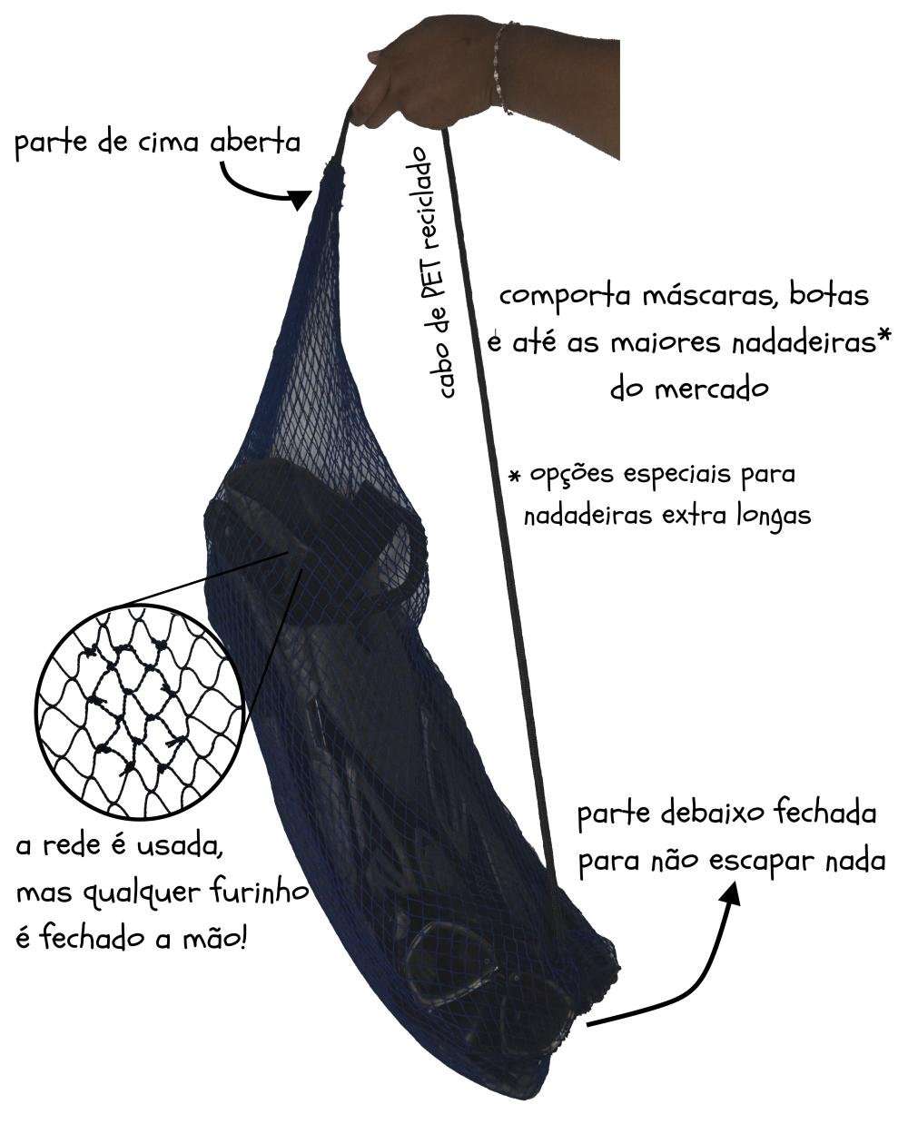 • Ideal pra nadadeiras, snorkel, pé de pato, flutuador