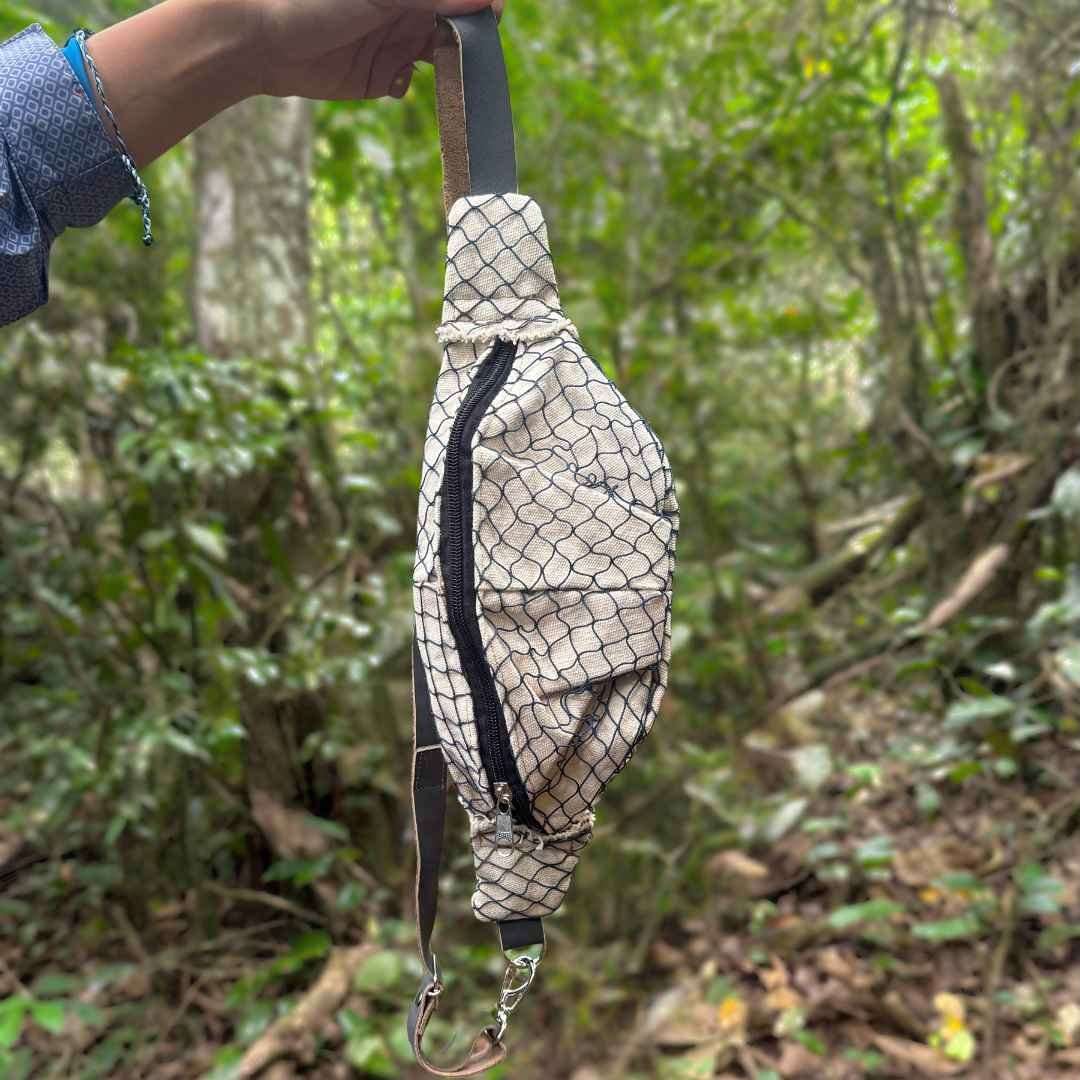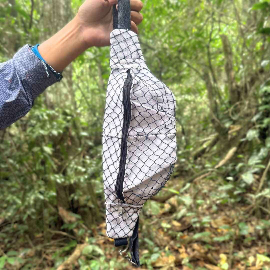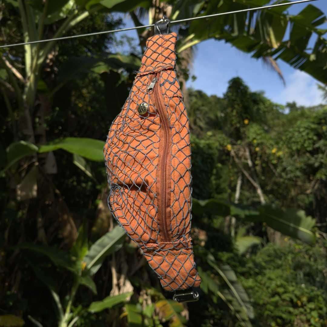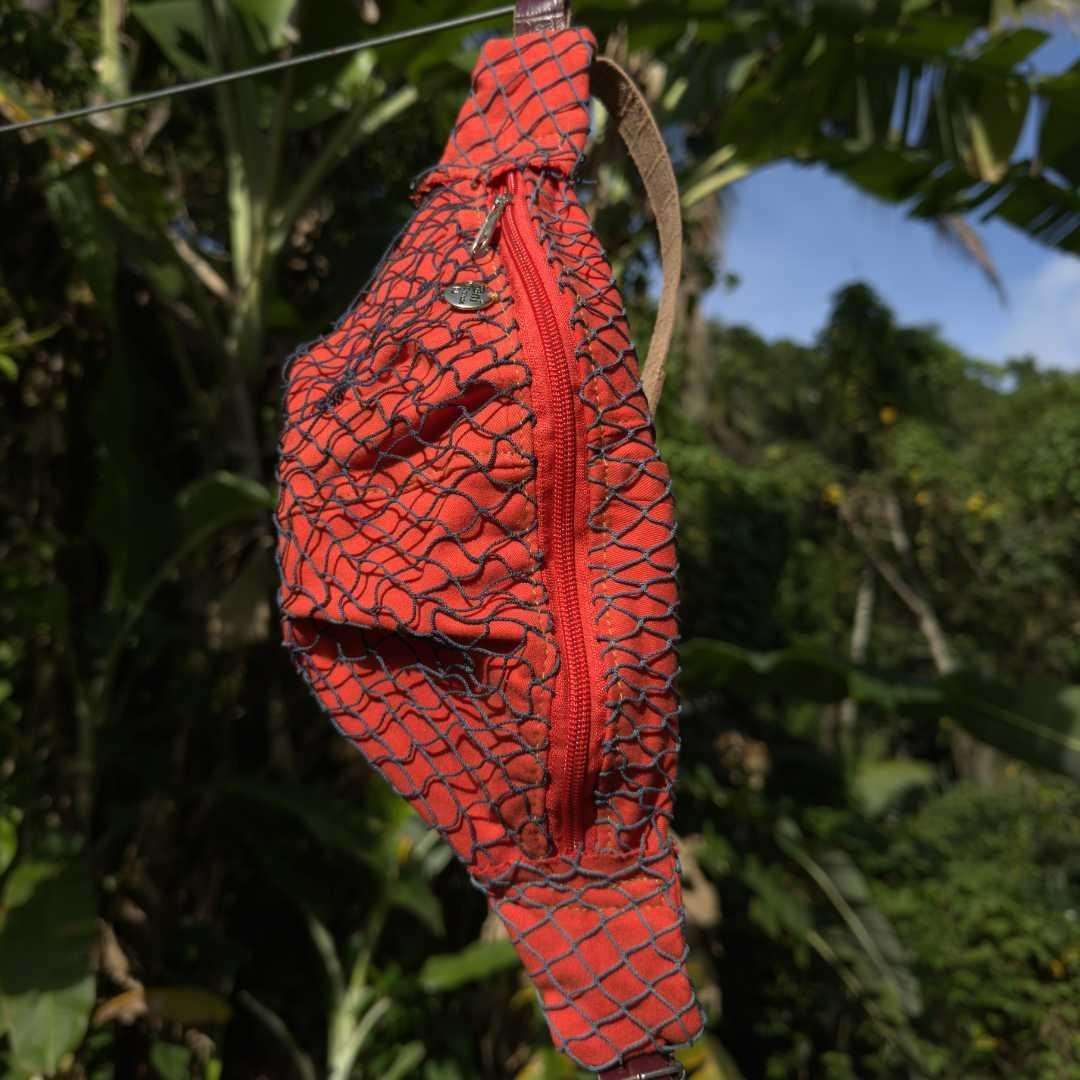 Uma collab com a maravilhosa Rani Ilha Grande, feita com rede de pesca reutilizada e retalhos de tecido. Sustentável, estilosa e prática na medida certa