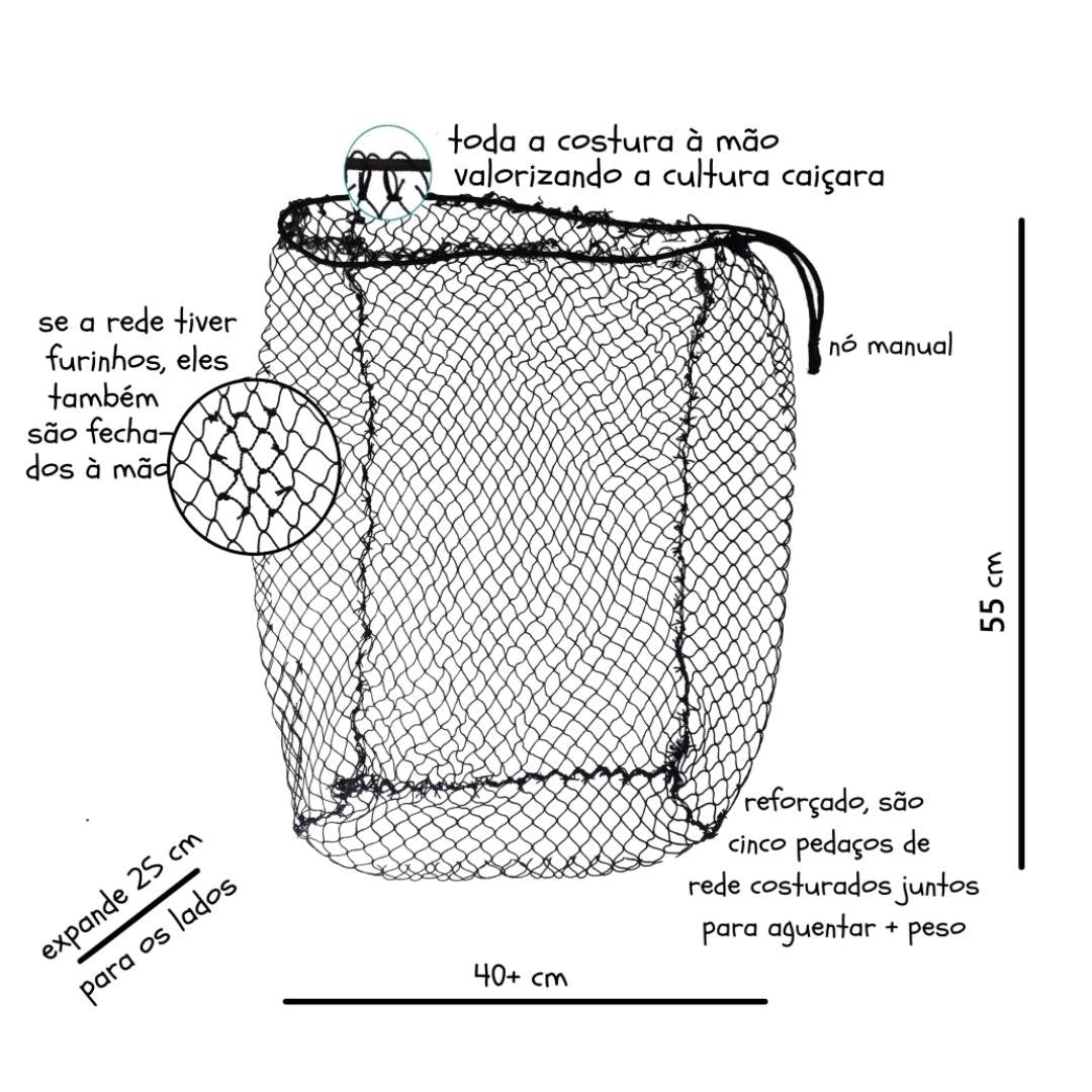 • Feito com rede de pesca reaproveitada